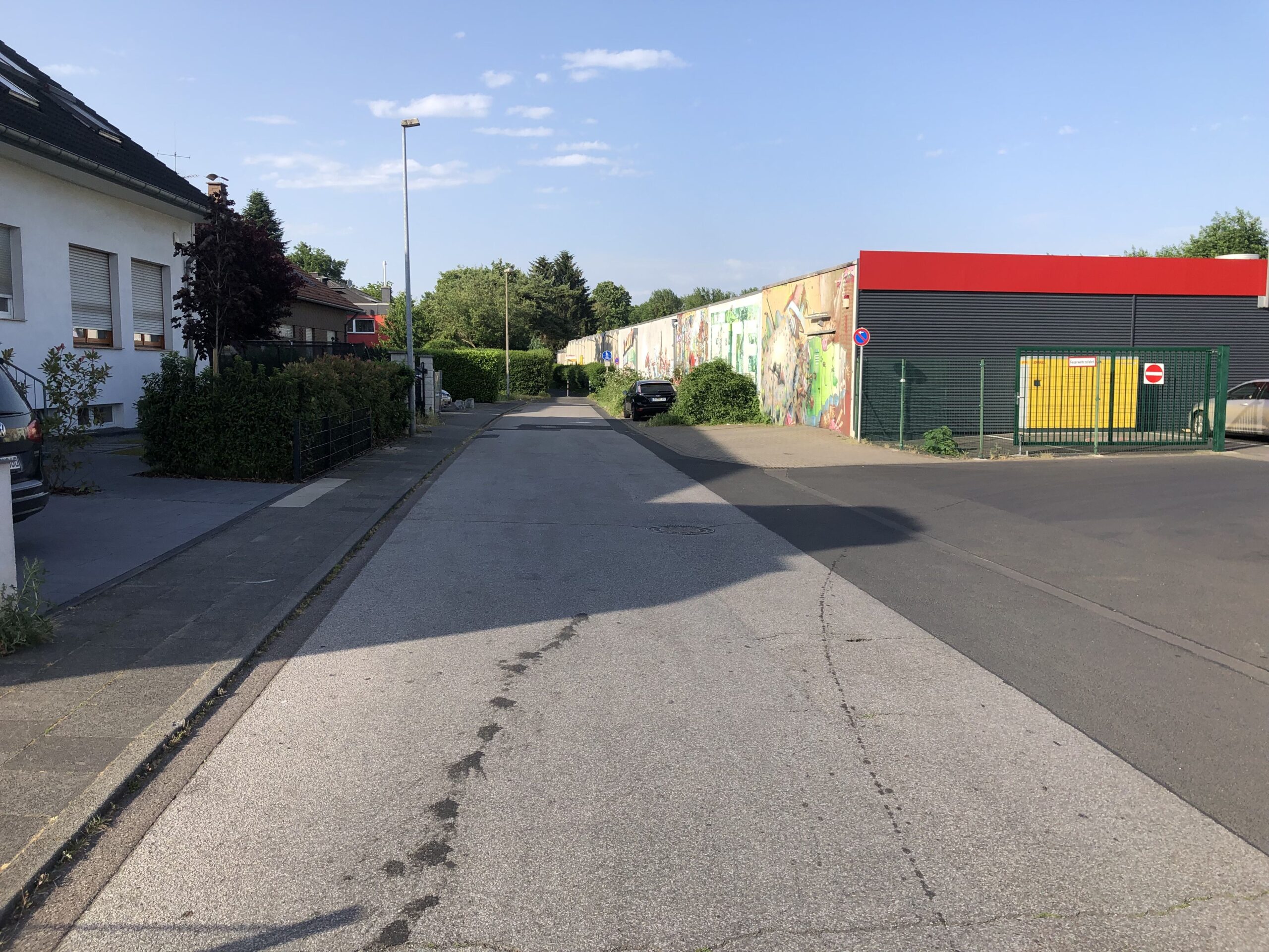 Der Lieferverkehr soll Rewe weiter über die Straße Zum Komarhof im rückwärtigen Bereich anfahren. Bei dem Lieferverkehr handelt es sich vorwiegend um LKW Verkehr mit täglich wenigen Fahrten. Daher kann sich die Politik vorstellen, dass sich Fahrradfahrer und Lieferverkehr die Fahrbahn teilen. Bei den gemeinsam genutzten Weg haben Fahrradfahrer den Vorrang.